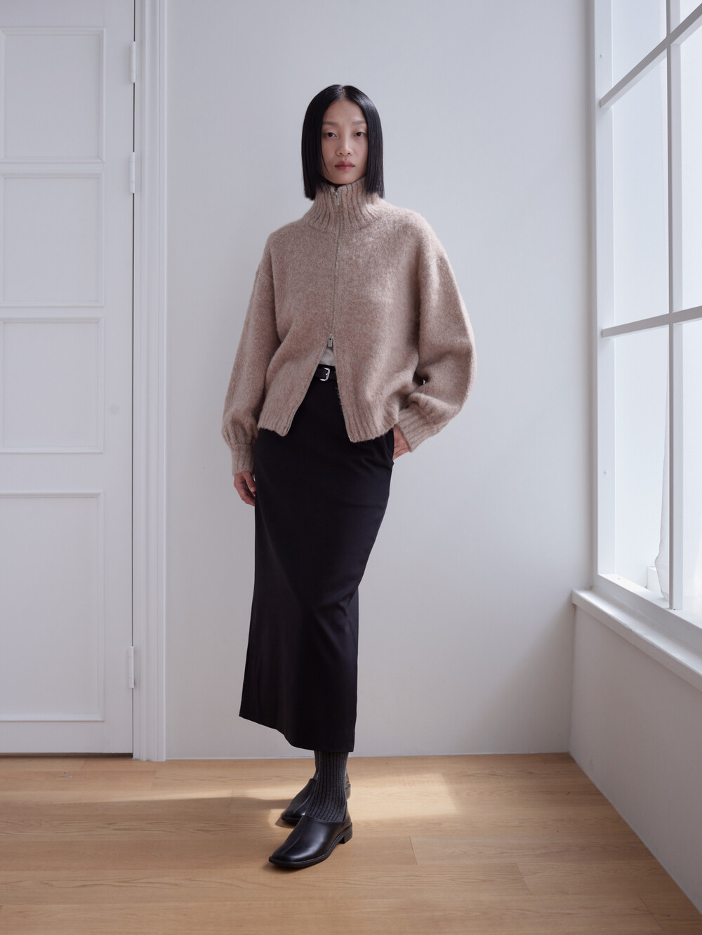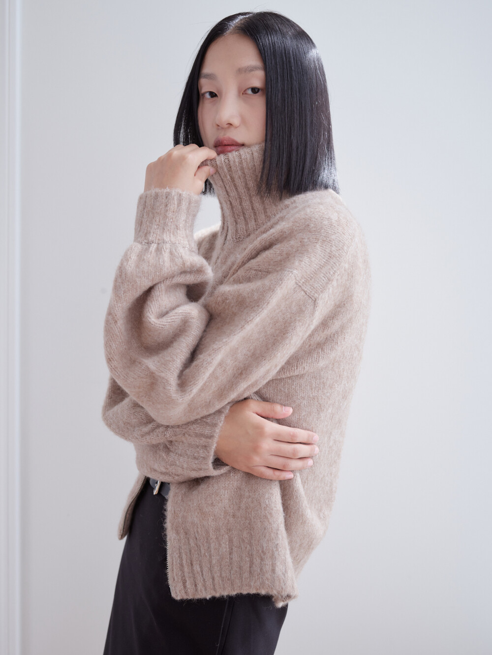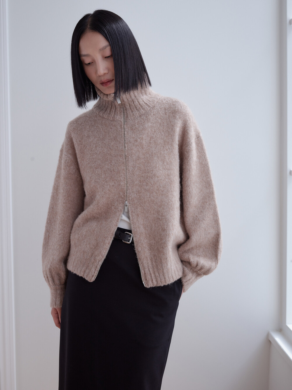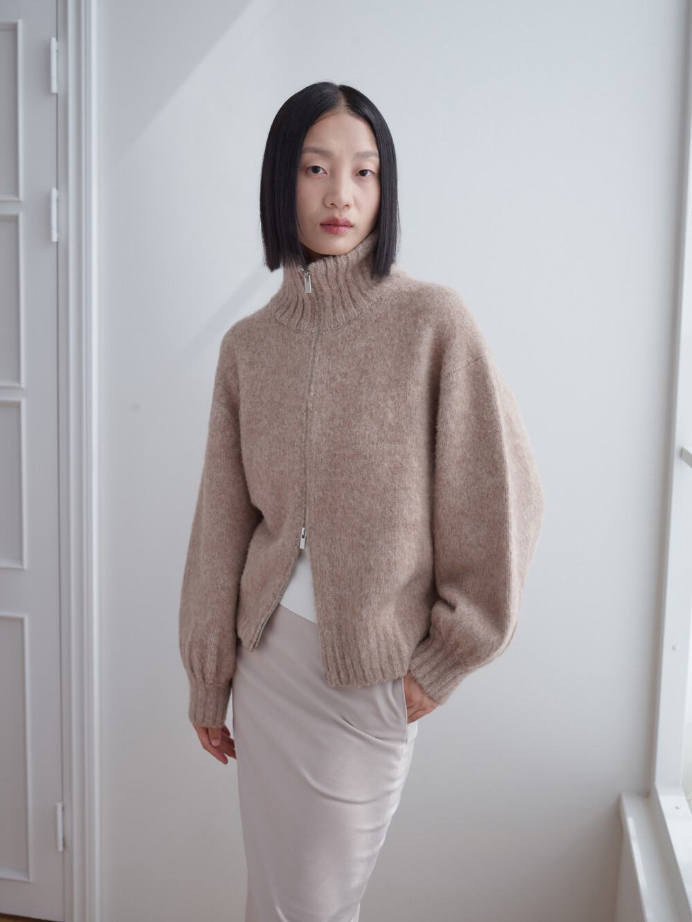 베이비알파카 집업가디건_베이지