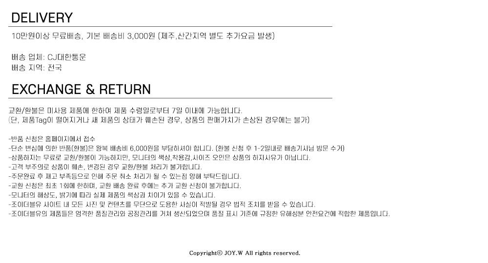 -세탁법: 드라이클리닝 / 표백금지 / 낮은온도 다림질 / 건조기 금지