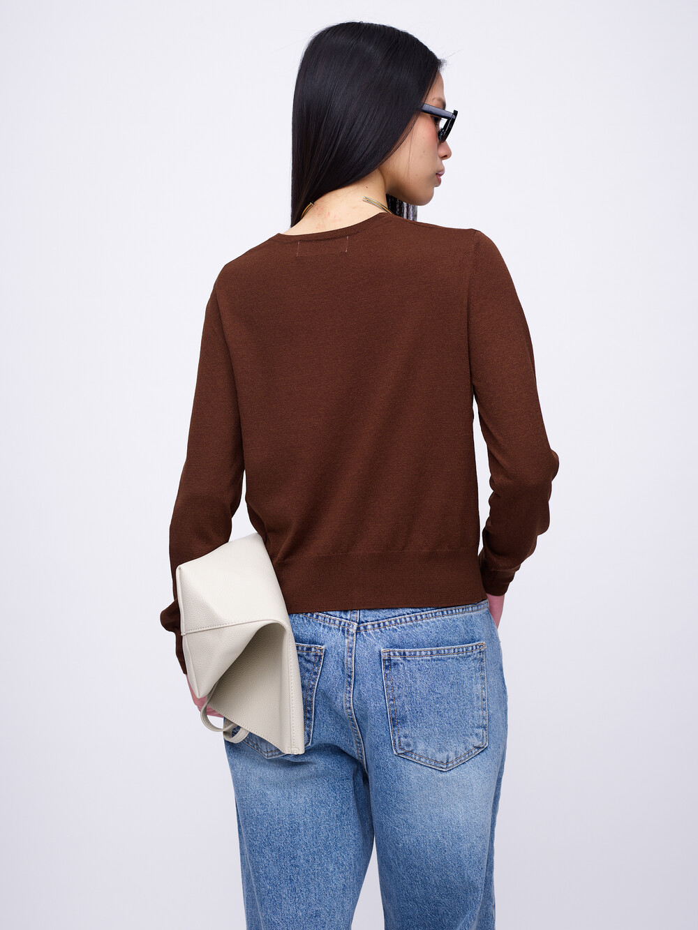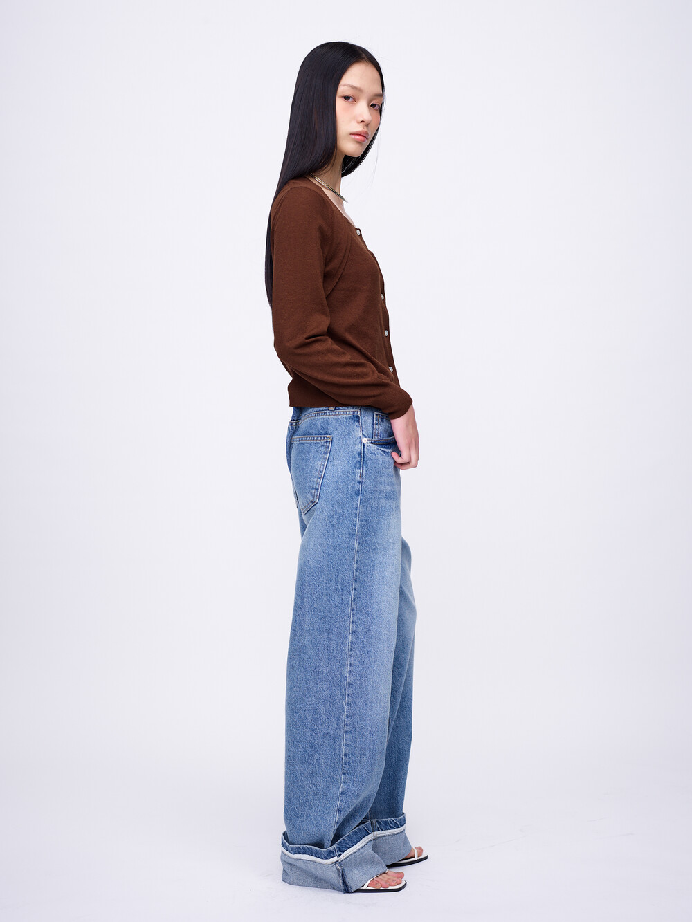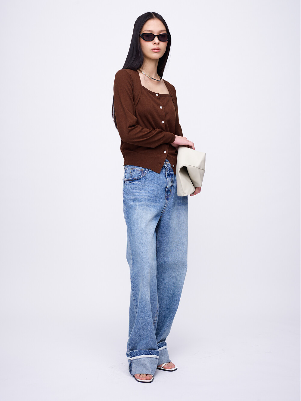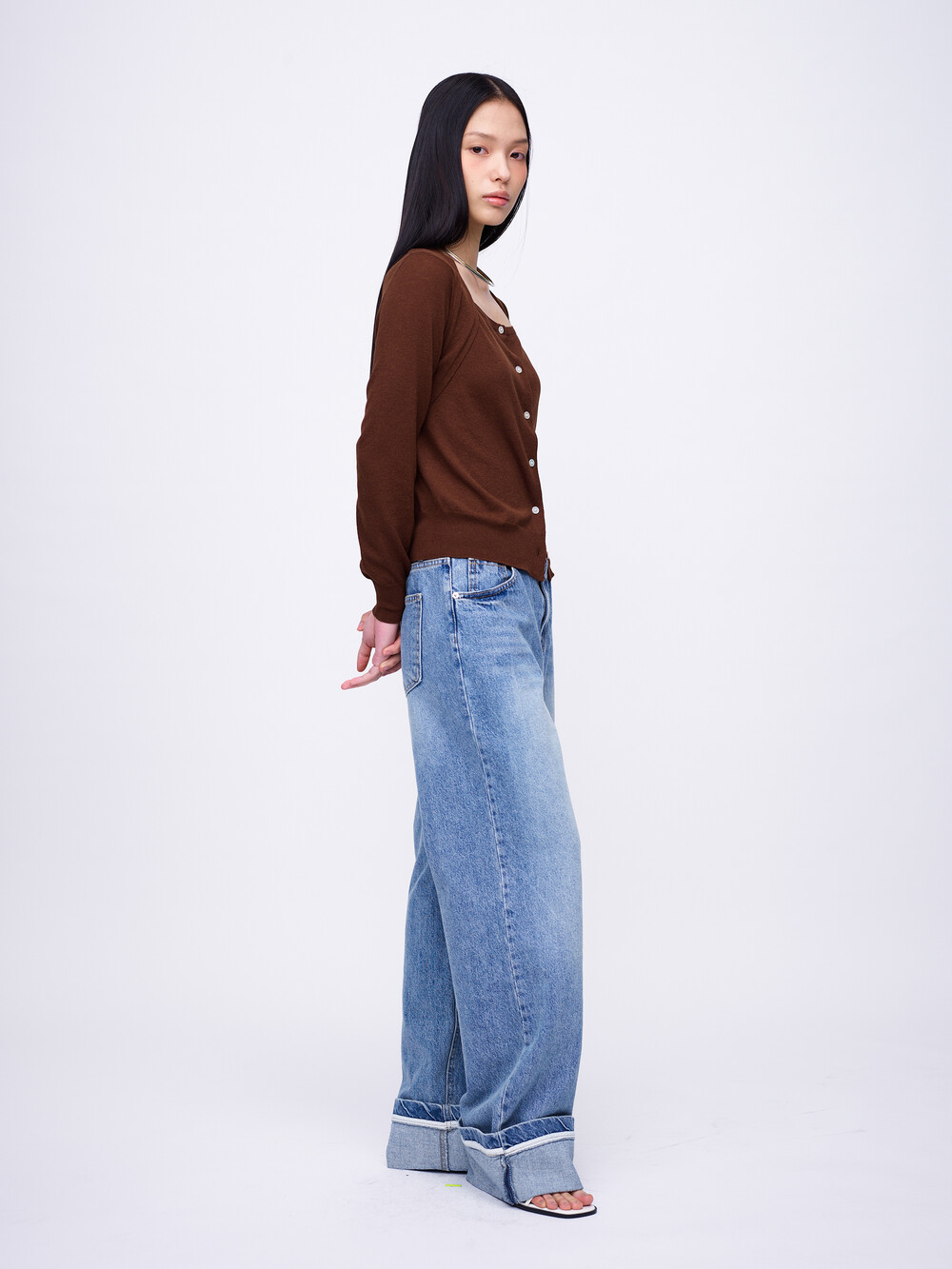Square-Neck Bolero Cardigan_Brown