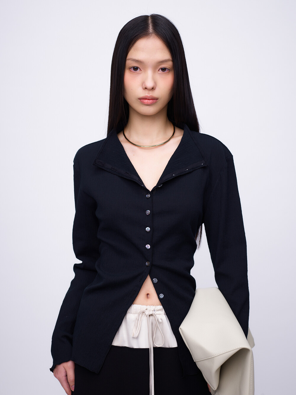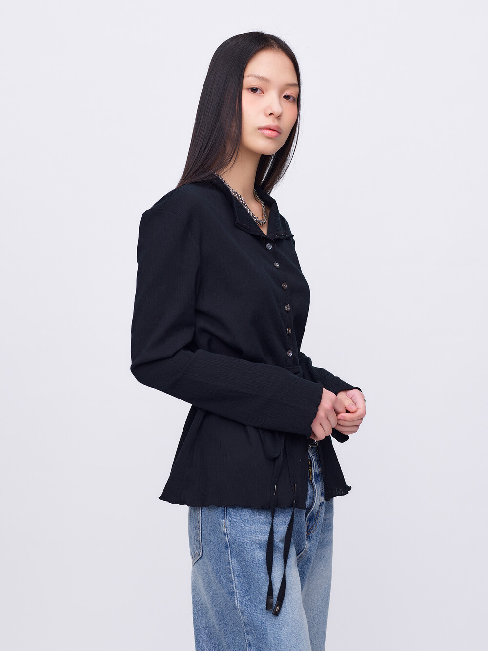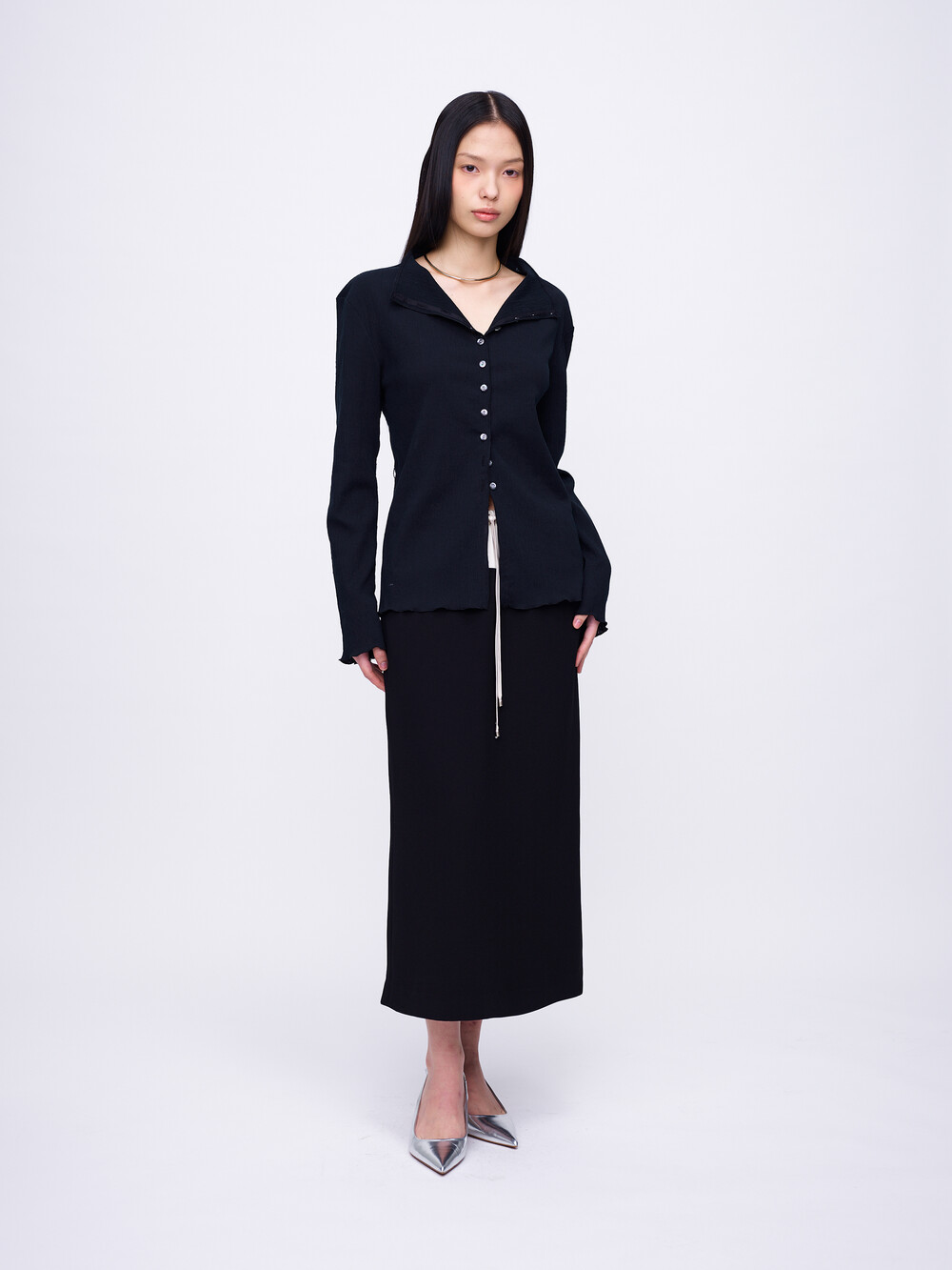 Pleats Cardigan Blouse_Black