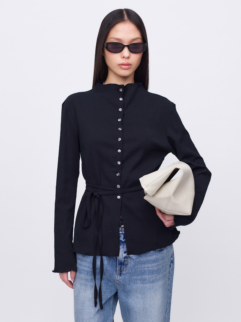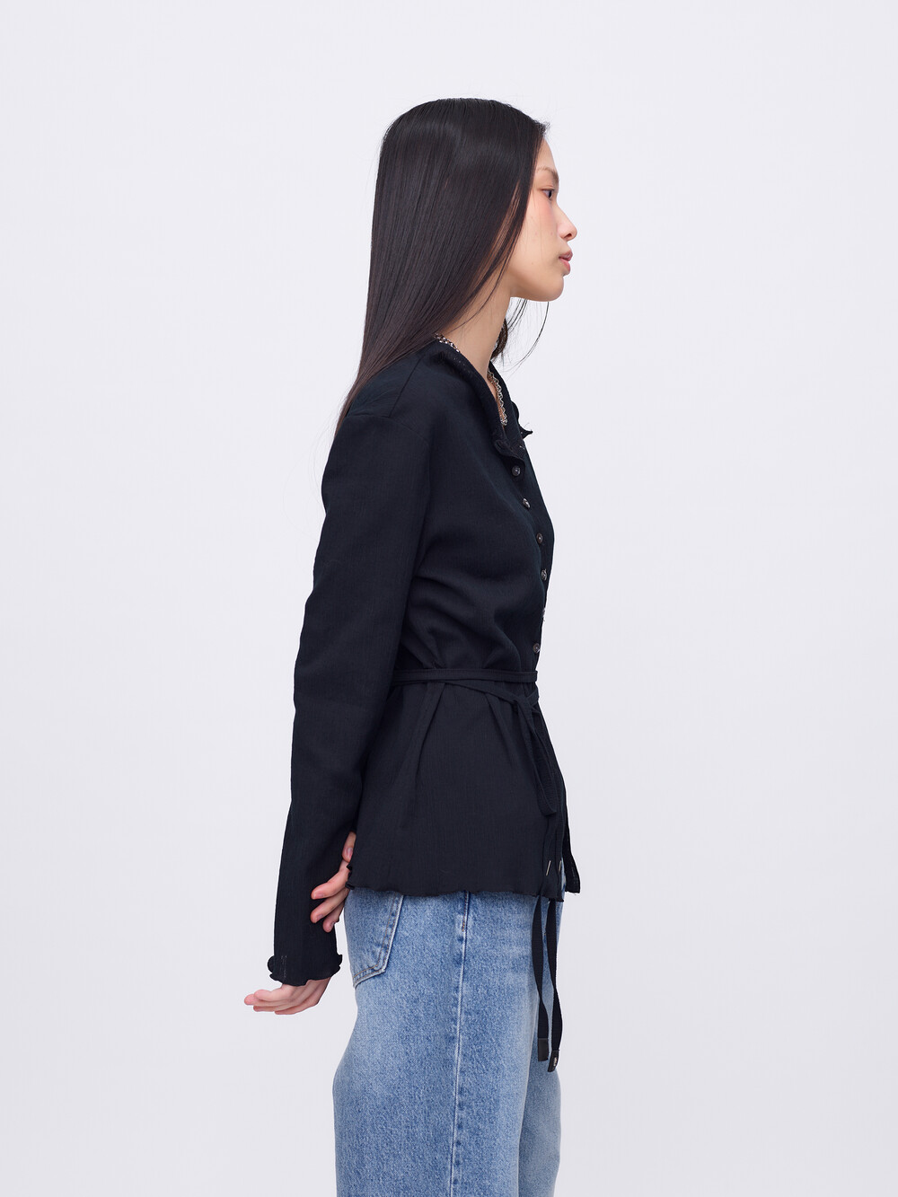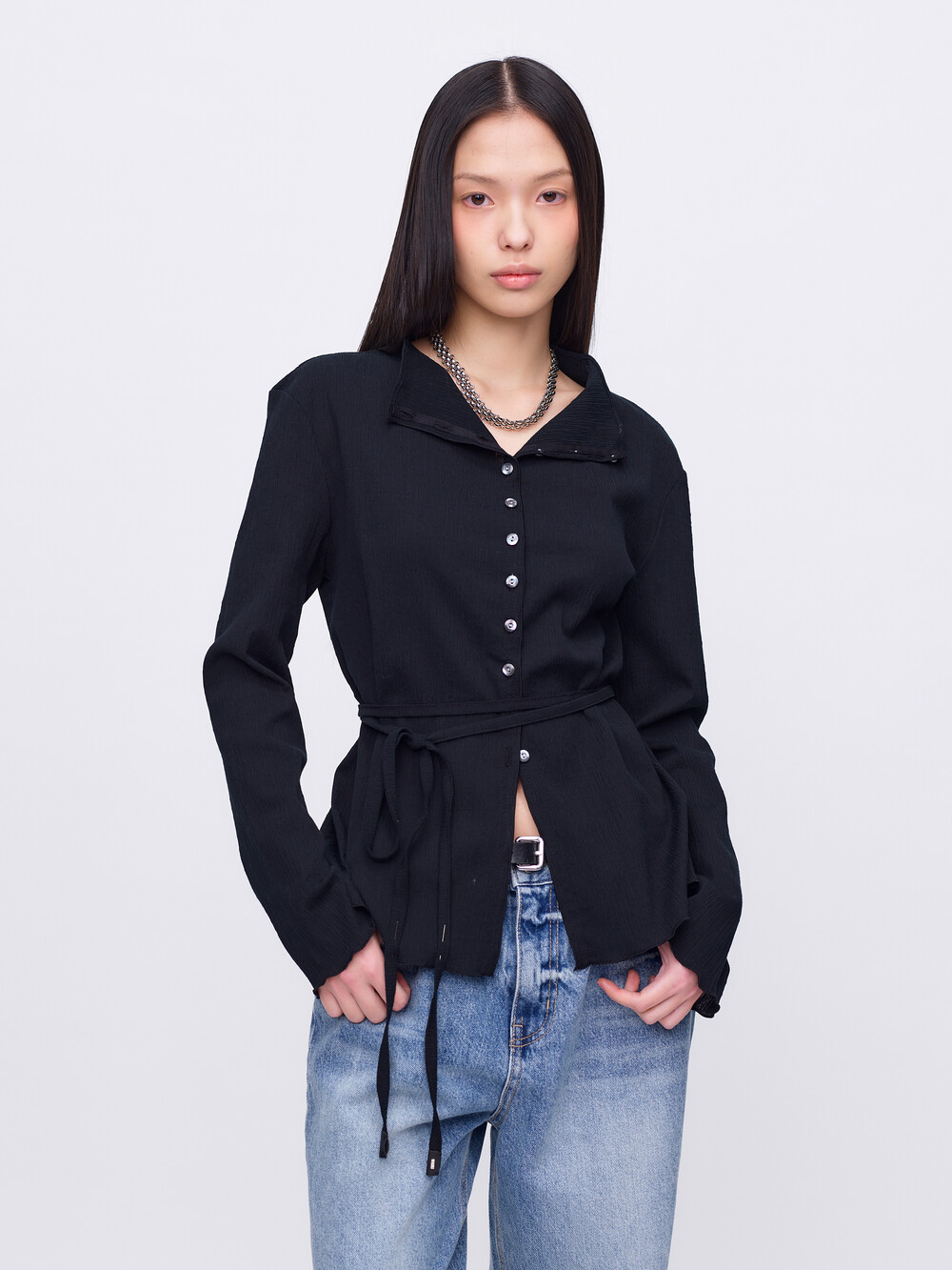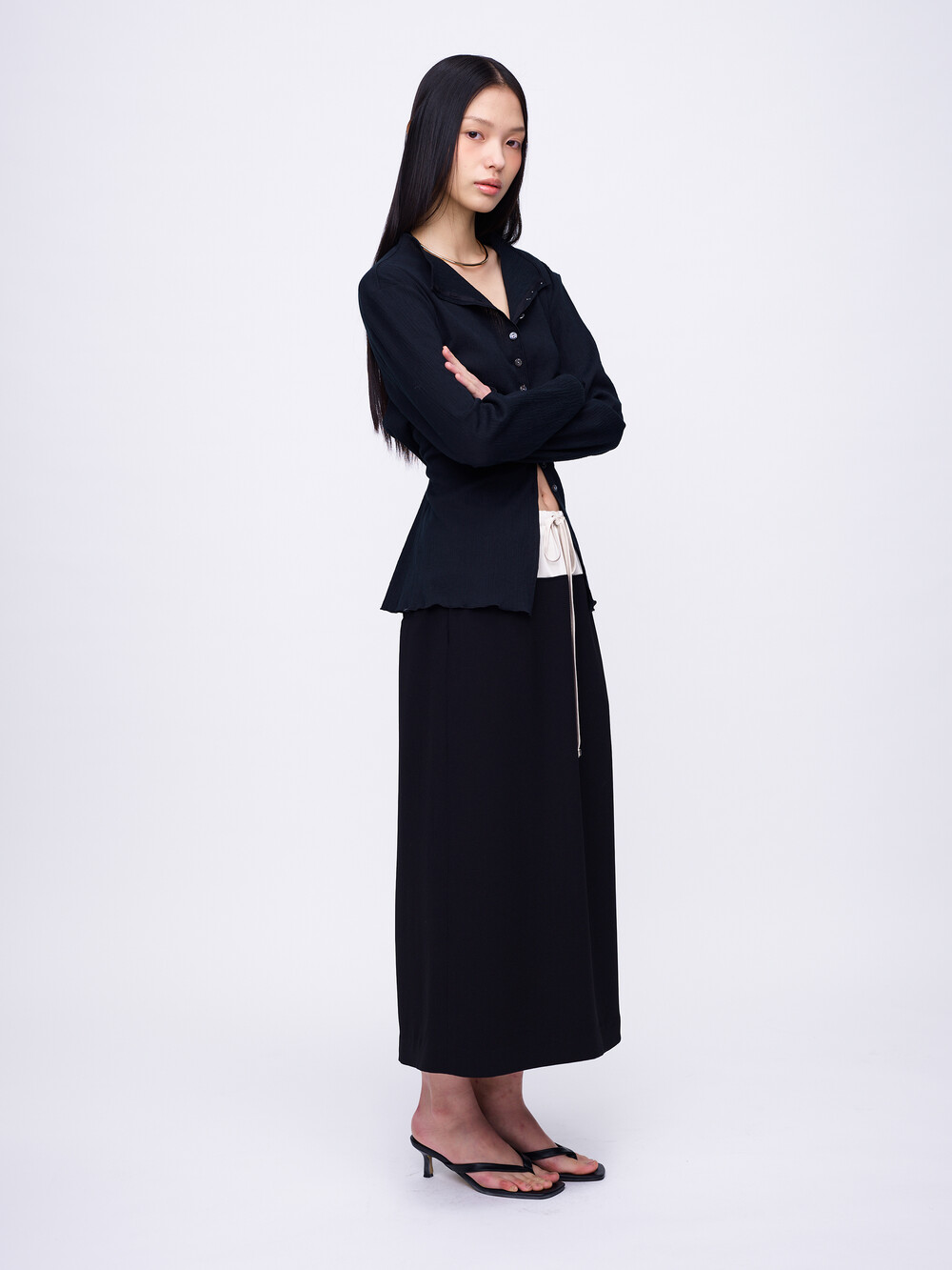 Pleats Cardigan Blouse_Black
