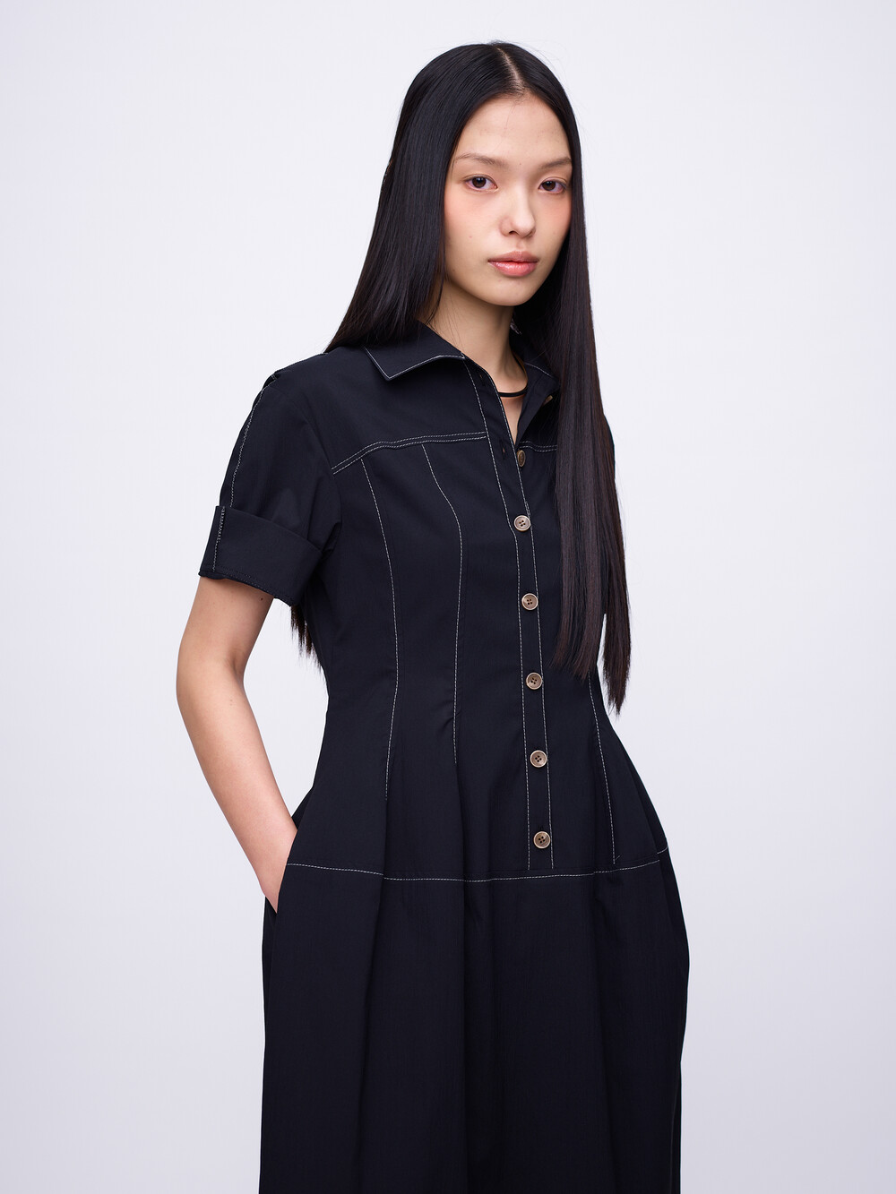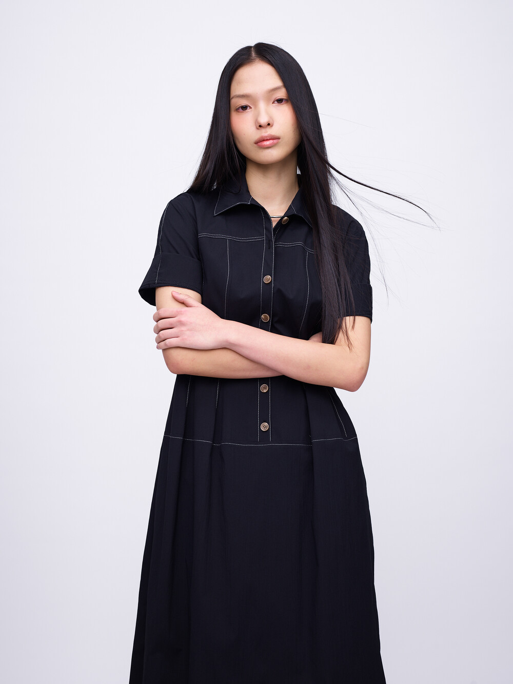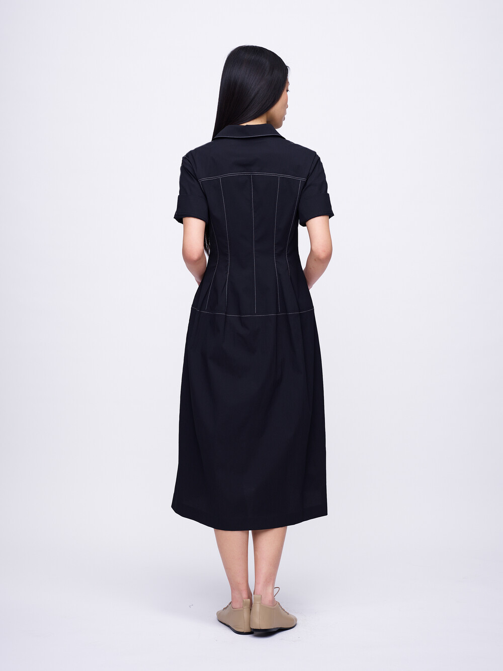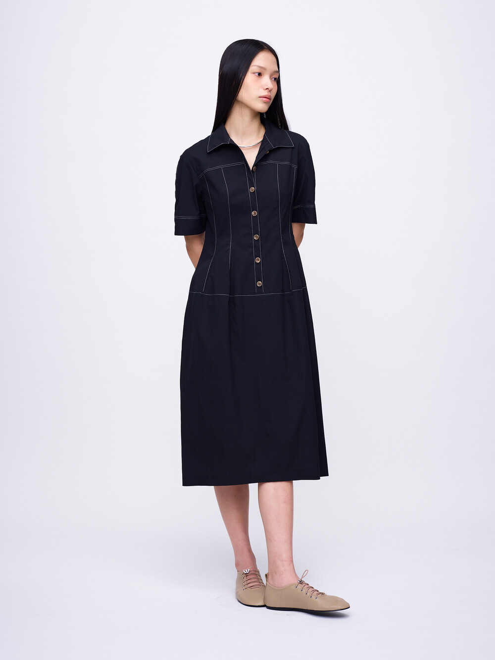 S : 총장 111.5 (뒷목점기준) / 어깨 43 / 가슴둘레 78 / 허리둘레 72 / 밑단둘레 140 / 소매길이 25 / 소매통 37