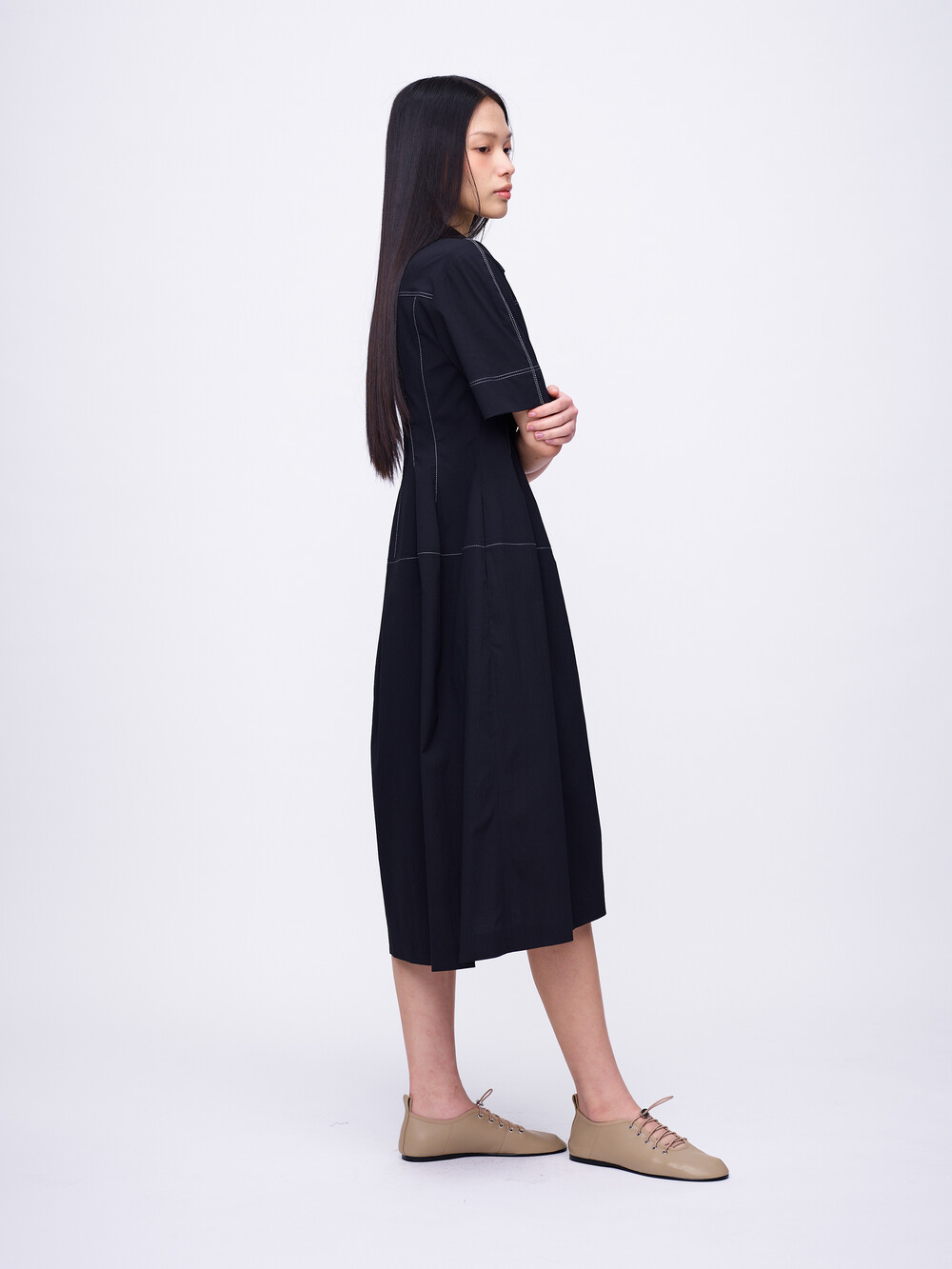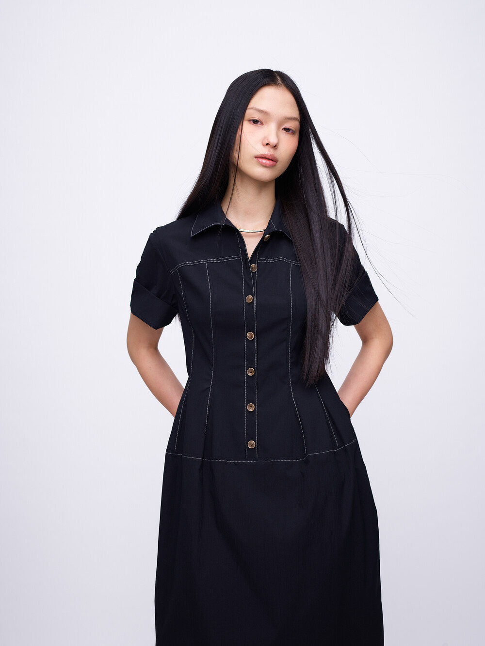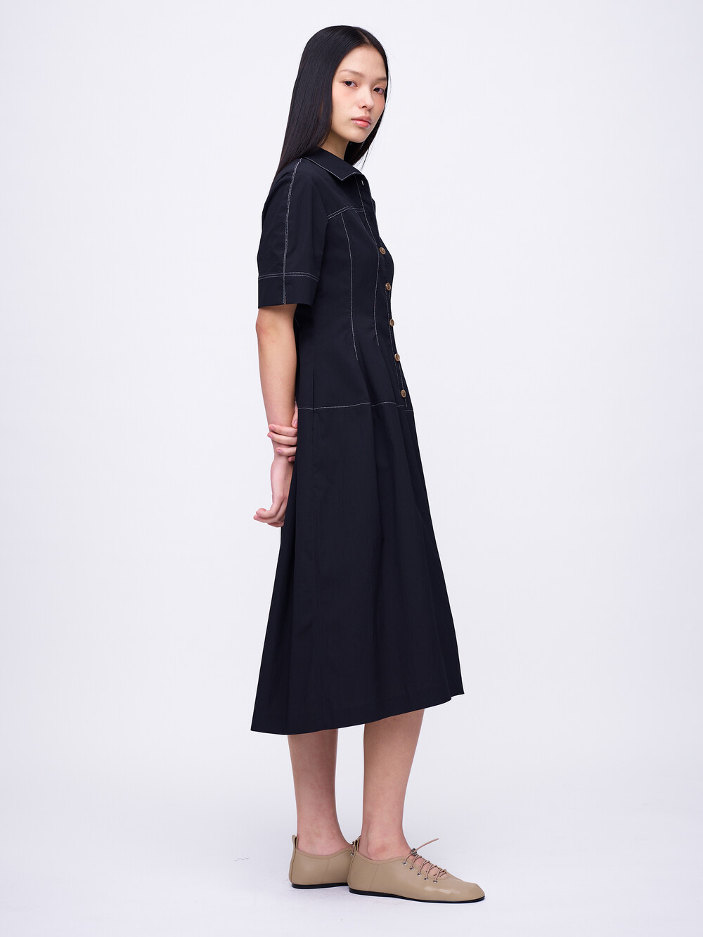 S : 총장 111.5 (뒷목점기준) / 어깨 43 / 가슴둘레 78 / 허리둘레 72 / 밑단둘레 140 / 소매길이 25 / 소매통 37