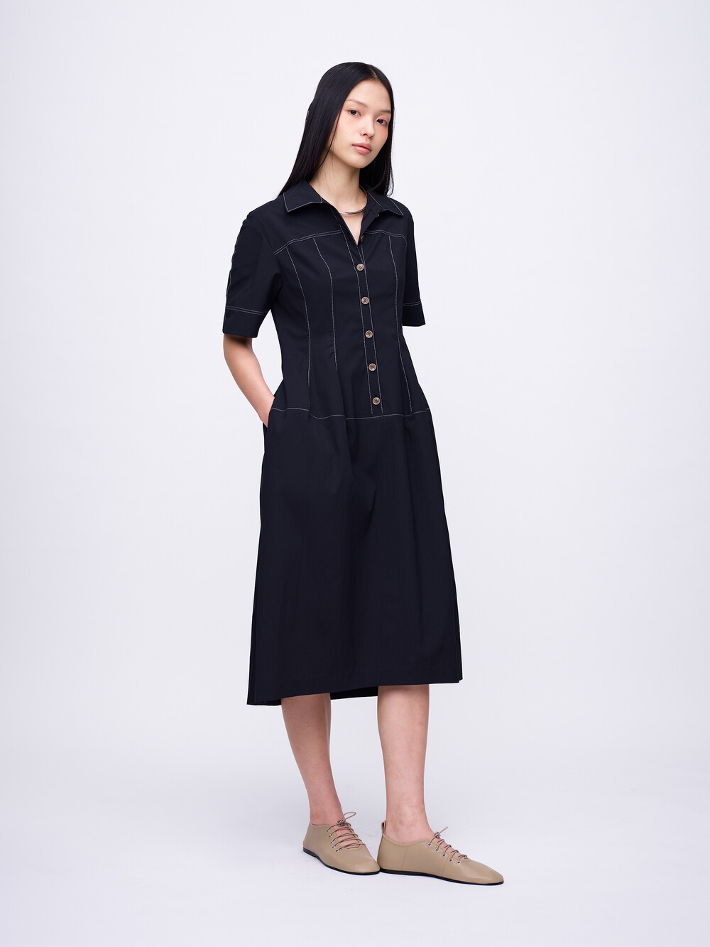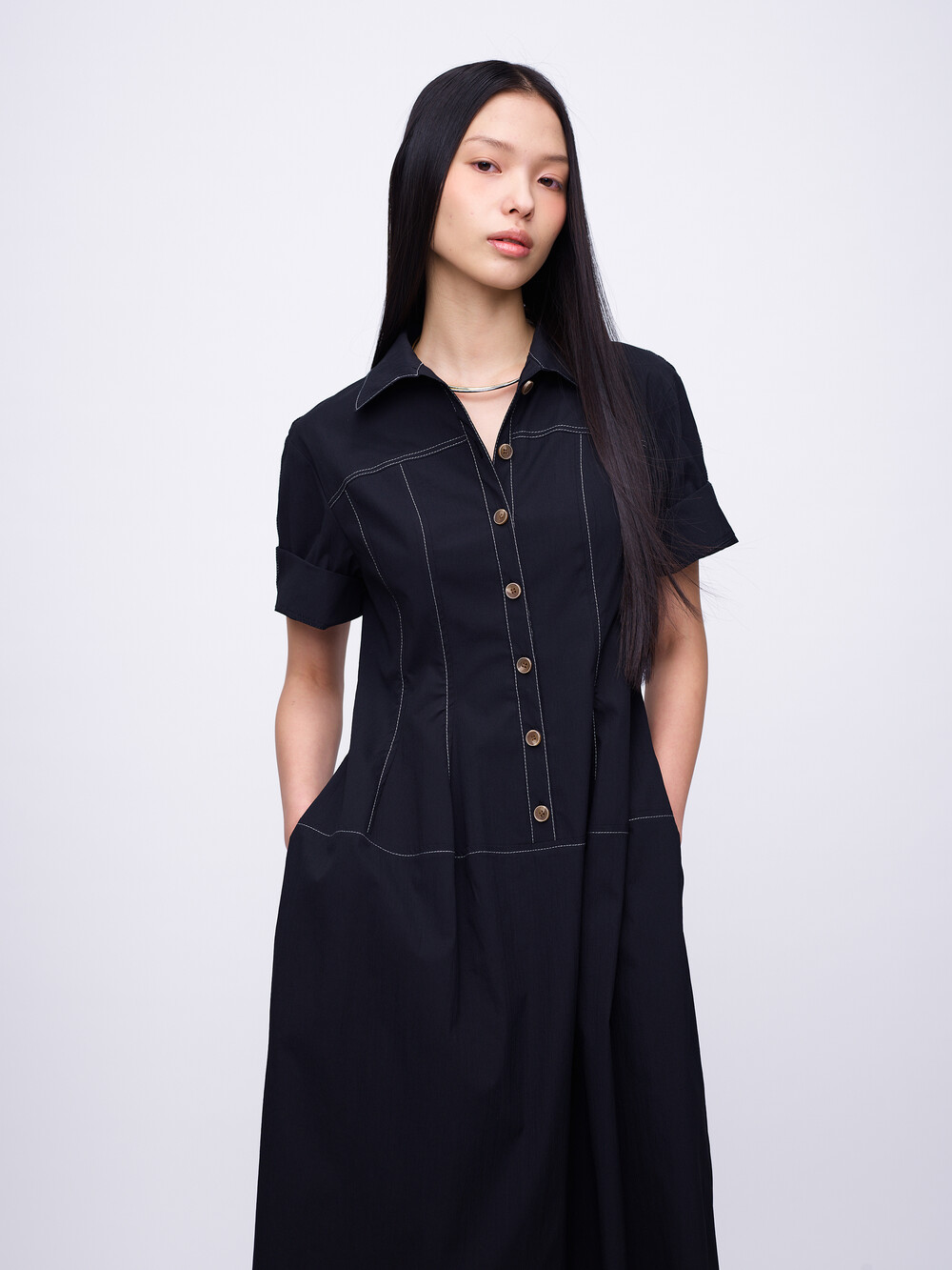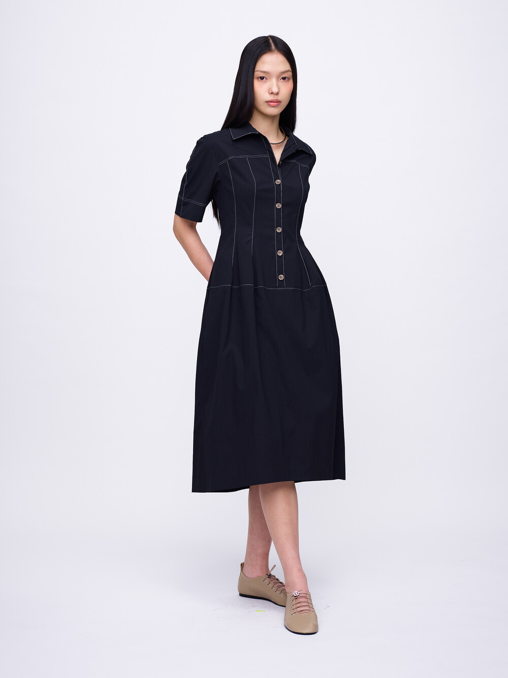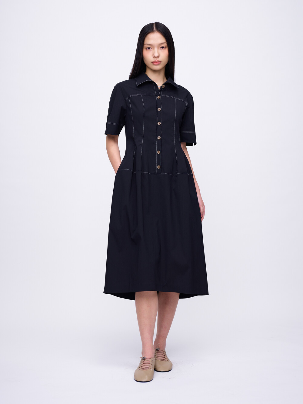 S : 총장 111.5 (뒷목점기준) / 어깨 43 / 가슴둘레 78 / 허리둘레 72 / 밑단둘레 140 / 소매길이 25 / 소매통 37
